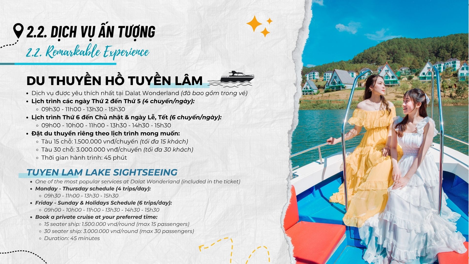 Đoàn từ 20 người giảm 20% vé. Theo partnership agreements, My Tam Travel hỗ trợ đặt chỗ. Do đó, dễ dàng tích hợp vào tour Đà Lạt.
