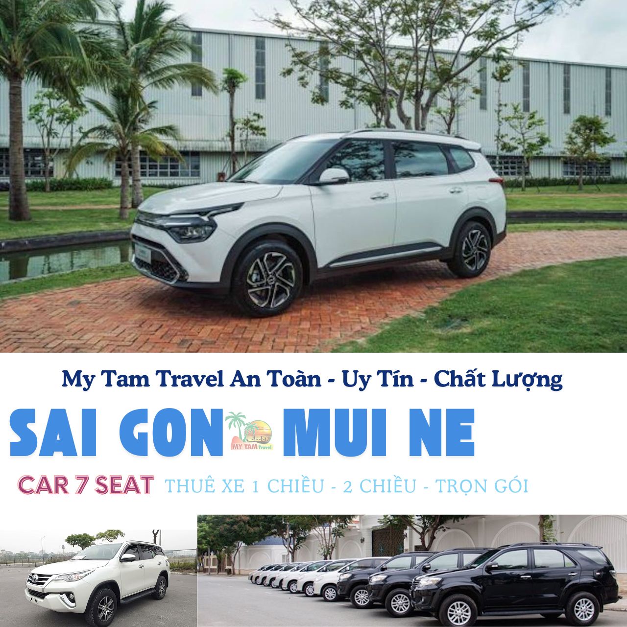 Book your 7 Seater Car Rental HCM to Mui Ne 3 Days 2 Nights with My Tam Travel for a comfortable trip. We offer a variety of vehicles including 4-45 seaters, Limo 9-28 seaters, and more for your convenience. Whether you need a Xe Mui Ne, Xe Sai Gon Mui Ne, or want to know the best Giá xe đi Mui Ne, our services are affordable. Get in touch with My Tam Travel at Hotline 0939790983 for the best deals on 7 Seater Car Rental HCM to Mui Ne 3 Days 2 Nights. Find out Giá 7 Seater Car Rental HCM to Mui Ne 3 Days 2 Nights today!