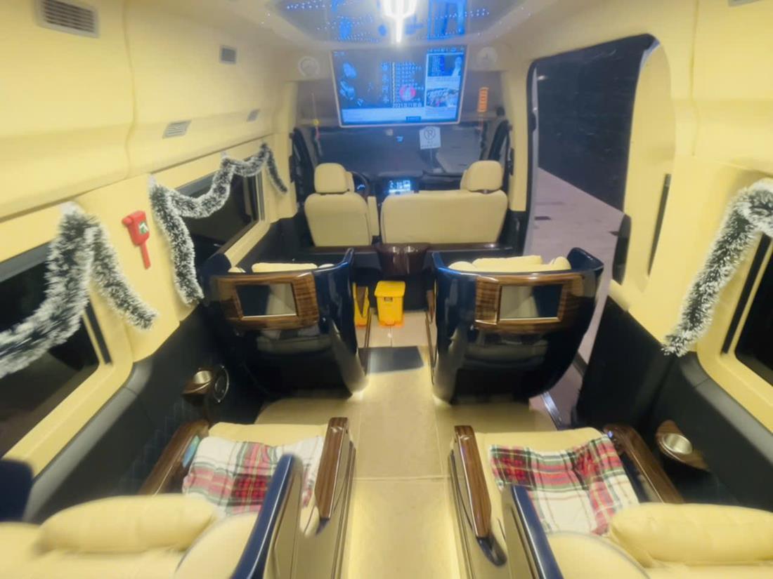 Experience premium group transportation with our Rental Limousine 11 Seats service in Vietnam. Perfect for corporate events, VIP airport transfers, and luxury sightseeing tours, our fleet includes the Ford Transit and Hyundai Solati Limousine. Enjoy comfort and style with a professional chauffeur service. Book your 11-seater limo hire today for an unforgettable journey!