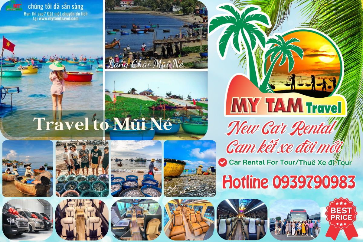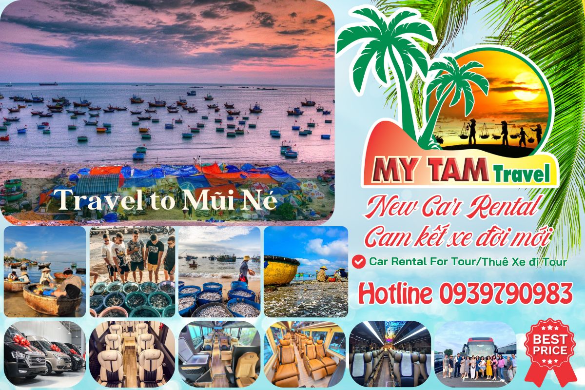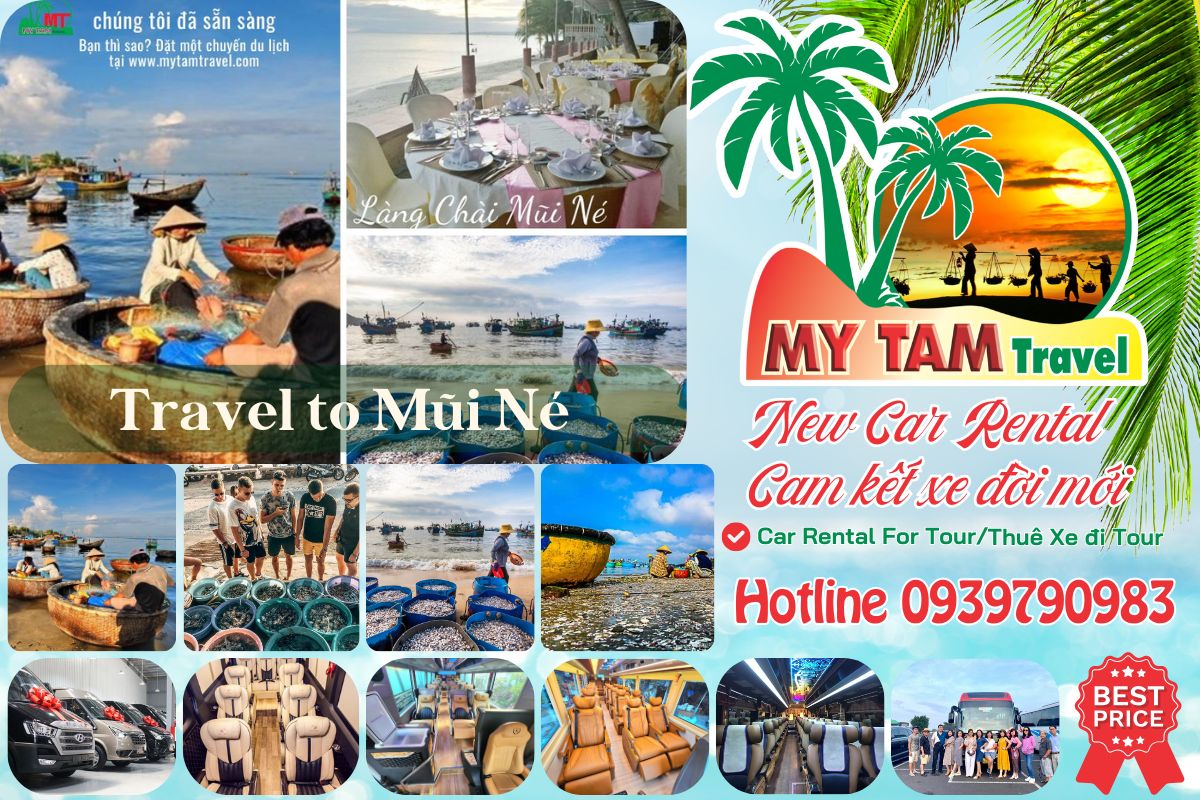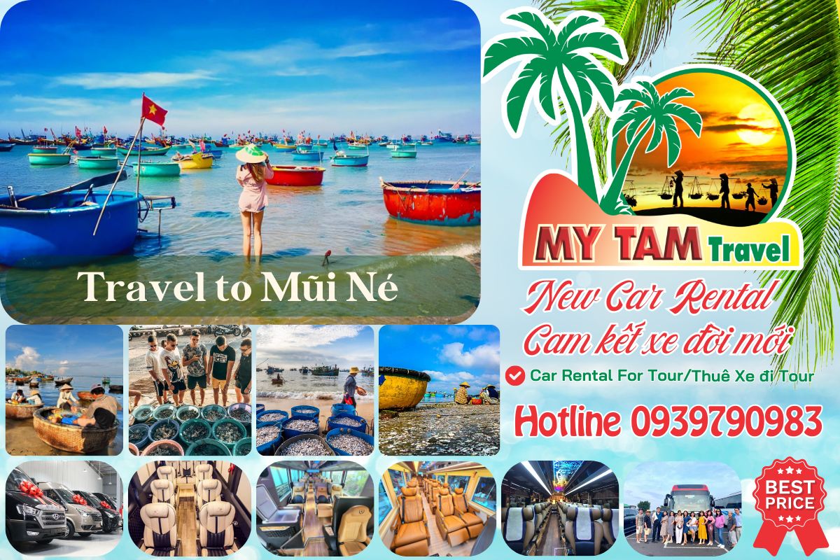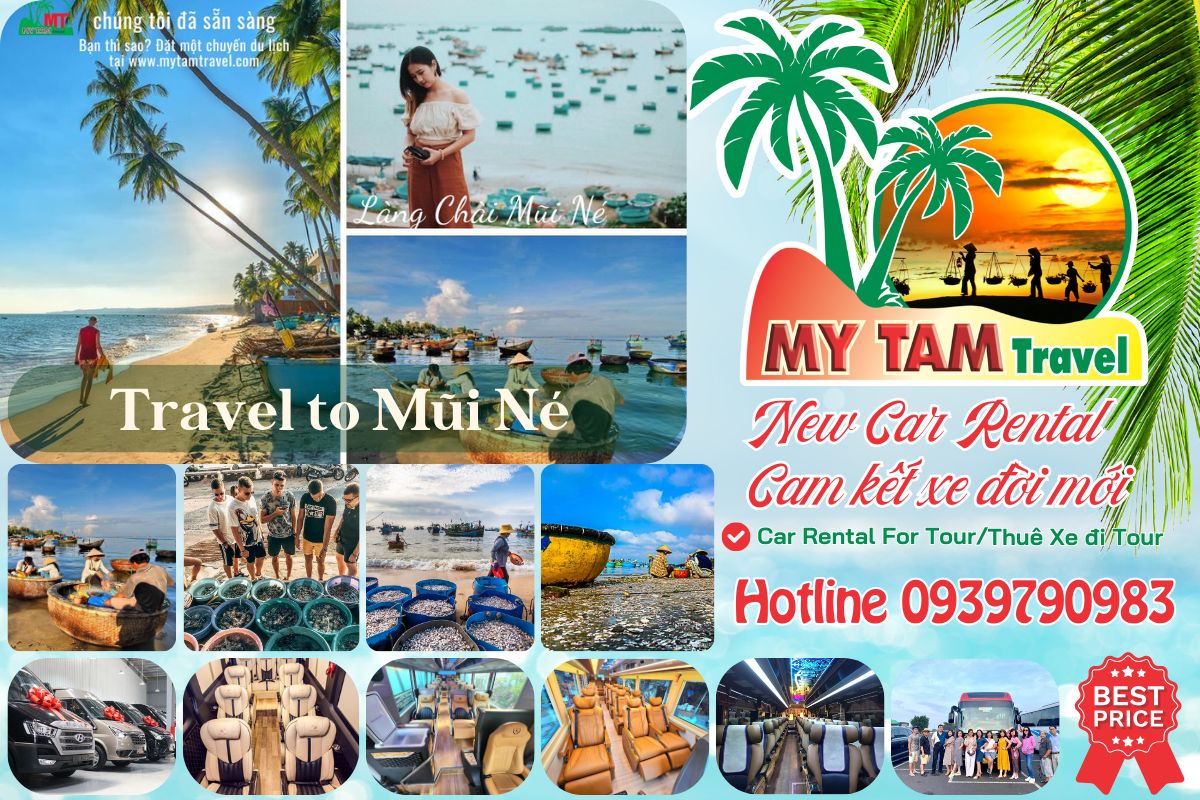 - Thuê xe: My Tam Travel cung cấp dịch vụ thuê xe với đa dạng các loại xe từ 4 chỗ đến 45 chỗ, xe Limousine cao cấp. Bạn có thể thuê xe 16 chỗ đi Mũi Né cho đoàn đông người, hoặc thuê xe limousine 18 chỗ đi Mũi Né cho chuyến đi sang trọng.