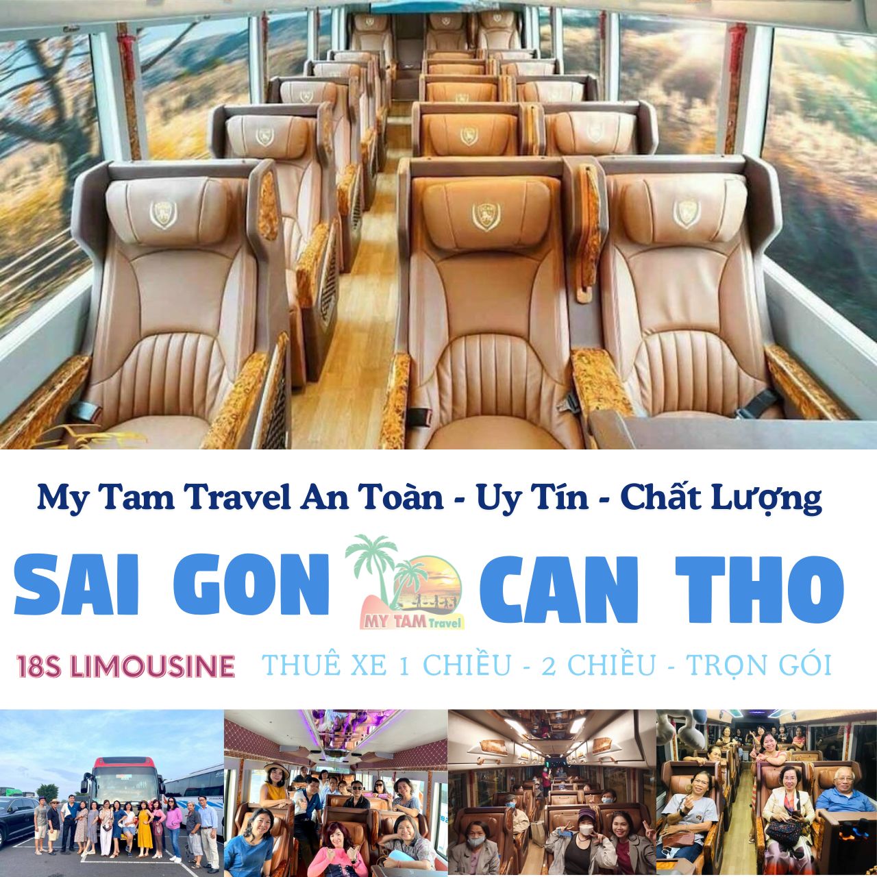 Nếu bạn đang tìm dịch vụ thuê xe từ Cần Thơ đi Sài Gòn Xe Limousine, My Tam Travel là lựa chọn lý tưởng với các loại xe đa dạng từ 4-45 chỗ và xe Limo 9-28 chỗ. Các xe Limousine được trang bị đầy đủ tiện nghi, mang lại sự thoải mái tối đa cho hành khách trong suốt hành trình. Chúng tôi cam kết mang lại sự an toàn, tiện lợi và chất lượng vượt trội. Hãy liên hệ ngay My Tam Travel qua Hotline 0939790983 để đặt xe Limousine từ Cần Thơ đi Sài Gòn và tận hưởng chuyến đi hoàn hảo.